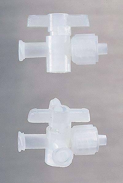 Adapter, PP, Female luer lock to three-way valve; (Kynar body and PP insert)