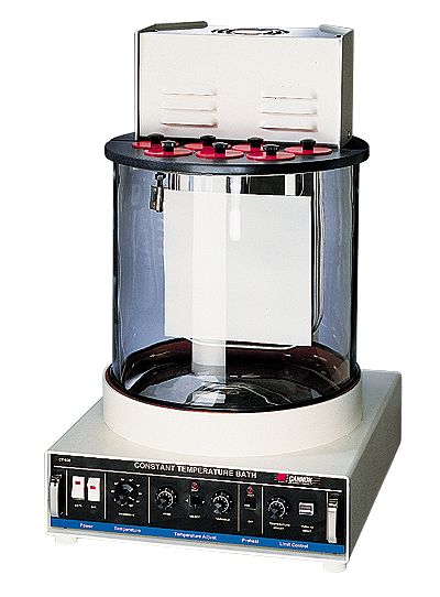 Control the viscosity of your samples with these Cannon® constant-temperature baths. These unique baths hold up to seven glass capillary viscometers and two thermometers (holders are required—order separately). See-through glass chamber lets you continuously view samples.
