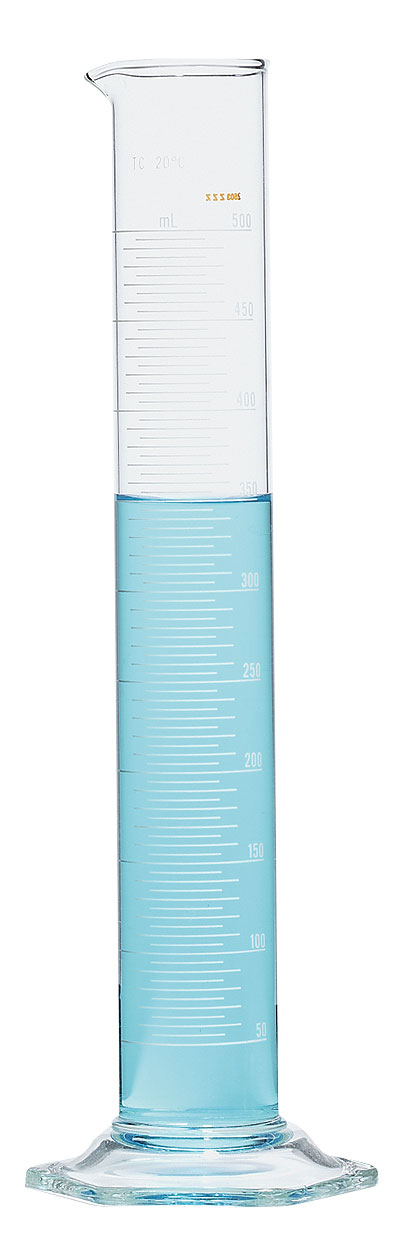 Cylinders provide accurate measurements even at the lowest graduations. These cylinders are used in ASTM tests D 86 and D447. Models 34200-04 and -05 meet ASTM E 133 requirements. Cylinders are made of borosilicate glass and feature easy-to-read white ceramic scales and handy pouring spouts. Heavy, round bases on the smaller sizes and a hexagonal base on the 2000 mL size ensure stability on your benchtop.