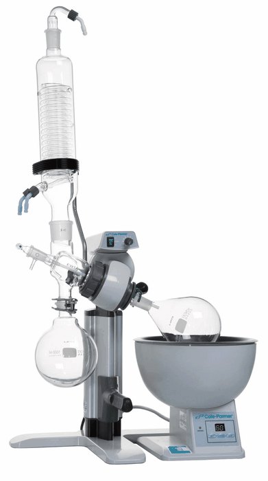 Cole-Parmer® evaporator systems make order, setup, and operation simple. Complete systems include a rotary evaporator with mechanical lift, digital water bath, and standard glassware set.