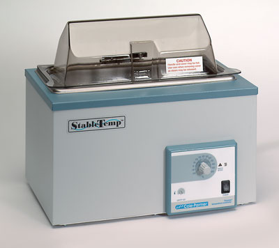 These water baths are ideal for general-purpose applications. Bath fluids can be controlled at temperatures as high as 100°C (60° without cover) with +/-0.2° precision and uniformity. Bath temperature can be read from alcohol thermometer (included) with a range from -20 to 150°C. The steeply gabled, polycarbonate cover accommodates glassware of varying heights and tilts out of your way when loading or removing samples, allowing condensate to drain neatly back into the bath.Laboratory, utility water baths are the ideal bath for maintaining a temperature set points over a long period of time. Different size and depth of the bath chamber to meet most every application. Units feature analog or digital temperature control with a ranges from ambient to 100° C. Options of high-temperature and low-level cutoff features to protect samples.