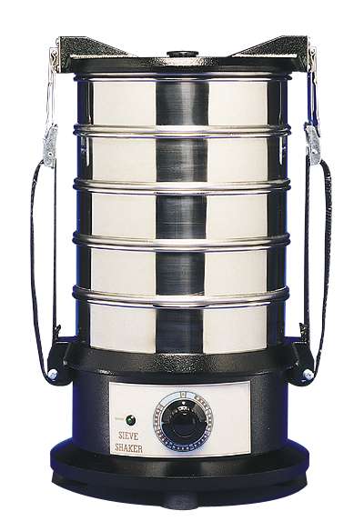 Shaker holds up to 10 full-height or 21 half-height, 8'' dia sieves with bottom pan and cover. Sieves are held securely in place with clamps.