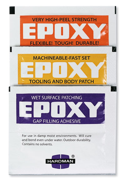What's included: packets include 10 epoxy or urethane packs and mixing sticks. Kits include 100 mixing sticks; 30 packets of quick-set epoxy (08778-02); 10 packets each of quick-set, non-sag epoxy (08778-04) and general-purpose epoxy (08778-06); five packets each of high peel-strength epoxy (08778-08), machinable epoxy (08778-10), wet-surface epoxy (08778-12), general-purpose urethane (08778-20), high peel-strength urethane (08778-22), high shear-strength urethane (08778-24), regular setting epoxy, water clear epoxy, fast setting silicone, and hand cleaner.
