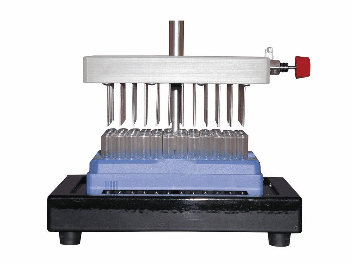 Rapidly evaporate common organic solvents—ideal for pharmaceutical, environmental, HPLC, GCMS, and general research applications. Needle valve controls the flow of gas into the equalizer manifold, which provides equal gas flow and uniform evaporation to each well. Needle valves ensure control for fast concentration of multiple samples. Each needle is made from 15-gauge stainless steel with easy height adjustment to accommodate a variety of sample sizes.