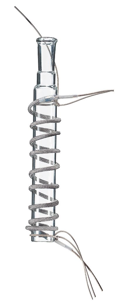 A tough, woven fiberglass outer sheath protects you from electrical hazards. NiChrome wire, spiral-wound around the core, packs more heating element into the cord. Cords feature low power consumption: the 3-,6-, and 12-ft 120 VAC cords (heating 1/4", 1/2", and 1" glass tubing respectively) draw about 0.1 watt/inch at full voltage/high temperature.