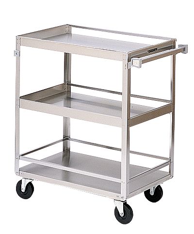 General purpose SS cart with guard rails 24 x 15 1 2 3 shelves 200 lb capacity
