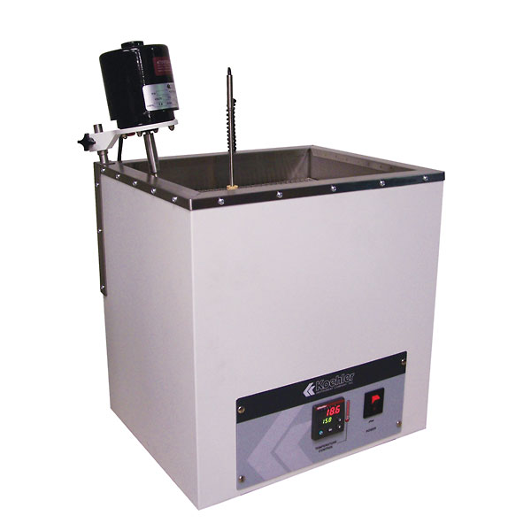 The constant-temperature bath features a digital temperature controller and a 750-watt heater; maintains a temperature stability of ±2°F (1°C). Overtemperature control interrupts power to the heater if programmed temperature is reached. Built-in support rack holds up to 16 test tubes.