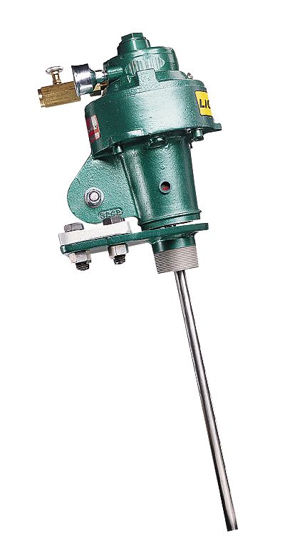 High-torque mixers are available with either 20° offset tank clamps or 2" (51 mm) NPT(M) bung adapters (models 50323-12 and -22). The offset clamp positions mixer for angular, off-center mounting on unbaffled tank rims. Bung-entering models mount onto 2" (50.8 mm) NPT(F) bungs for closed-container mixing, and come with Lipseal.