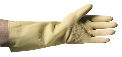 Gloves feature a "Z" pattern to enhance grip when handling wet items. Made of natural rubber, nitrile, and neoprene. Individually packaged per pair.