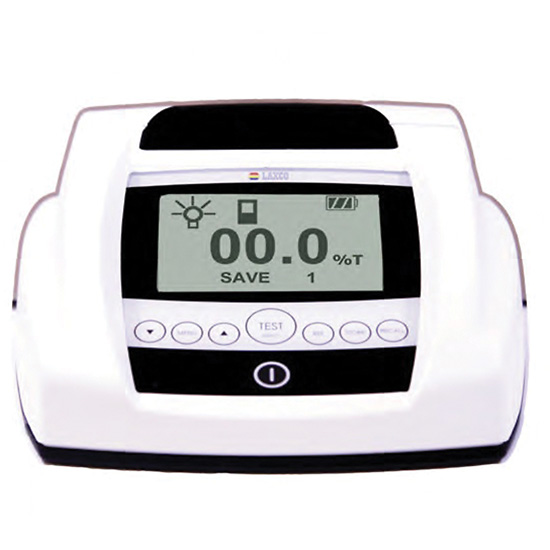 The 600 nm LED light focuses on the sample through fiber optic cables to obtain the readings quickly—no warm up time required. A simple touch panel provides eight separate functions and is easily wiped down in the event of spills. The fully recharged battery assembly provides 30 hours of operation; recharge time is 12 hours when the instrument is turned off.