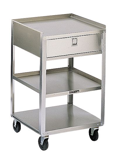 SS equipment cart with drawers; 18-3/8" x 16-5/8", 3 shelves, 200 lb capacity