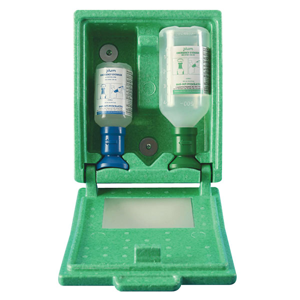 Ideal for emergency rinsing of debris, and neutralization of acids or alkalis in the eyes. Bottles with a green eye cup are sterile saline eye wash; use to wash particulate debris from the eye. Bottles with blue eye cups contain a sterile phosphate buffer solution; use to rapidly neutralize acids, alkalis, and other chemicals in the eye.