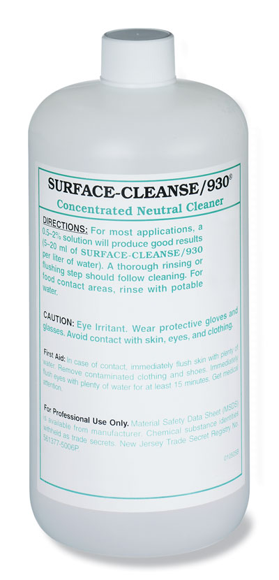 Surface-Cleanse/930 is a gentle, non-ionic cleaner designed to deliver powerful cleaning action. It contains a mixture of nonionic sufacatants that is safe for use on aluminum, zinc and other delicate metals and the cleaner's low sodium content makes it ideal for use on electronic components. Its neutral pH eliminates surface damage that may be caused by an acid or alkaline cleaner.